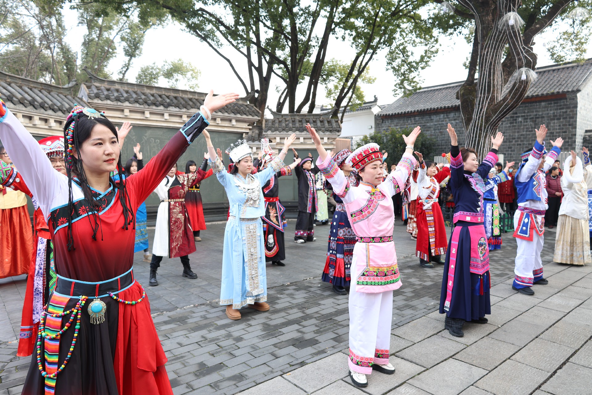 2月17日至19日,桐城市委统战部联合安徽文都景区运营管理有限公司在桐城六尺巷景区开展“中华民族一家亲”主题宣传活动,吸引众多群众与游客驻足观看。 春节的六尺巷游人如织。景区内,红艳艳的连廊灯笼墙植入了五十六个民族名称、叠翠楼前搭起了石榴籽民族团结大舞台、电子屏滚动播放民族工作宣传标语,中华民族共同体元素与古巷完美融合,民族团结氛围浓厚。活动中,“中华民族一家亲”主题巡游在叠翠楼大舞台正式启动。身穿各民族传统服饰的表演者们载歌载舞,沿着古巷缓缓前行,引得游客纷纷拍照记录,更有部分游客参与到巡游队伍中跟随起舞,引得人们热情喝彩叫好不断。
